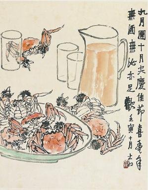国画 蟹酒 73cm×60cm 1962年 陈大羽绘 南京艺术学院藏