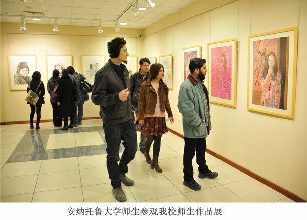 土耳其安纳托鲁大学位于常州市国际友城埃斯基谢希尔市内,是土耳其及全球最具现代化、活力与创新精神的大学之一,有25000名全日制学生及180多万远程教育学生,是世界最大的开放式大学。安纳托鲁大学艺术学院通过对学生进行审美与创造力培训,培养了艺术领域的杰出创业人才。该艺术学院已于2011年4月与常州工学院艺术与设计学院签订了交流合作谅解备忘录。代表团在安纳托鲁大学艺术学院交流的重点是举办常州工学院师生作品展。作品展开幕式于3月18日在埃斯基谢希尔市一座规模很大的美术馆隆重举行,安纳托鲁大学艺术设计学院院长在开幕式上发表了热情洋溢的讲话,并为被他们艺术馆收藏的常州工学院师生作品颁发了收藏证书。埃斯基谢希尔市市长Yilmaz Buyukersen先生和副市长Jale Nur Sullu女士等亲临开幕式现场,Yilmaz Buyukersen市长还就师生作品一一作了精彩点评。本次作品展为期2周,将于3月31日结束。双方同意由常州工学院文化与艺术融合协同创新中心组织国内相关高校开展美术、设计大赛,每两年一次赴安纳托鲁大学艺术学院举办大赛优秀作品展,同时在校际间拓展师生交流、参加学术研讨等方面开展合作达成意向。