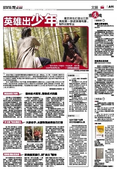 《现代快报》:南艺师生打造出江苏高校第一部武侠微电影