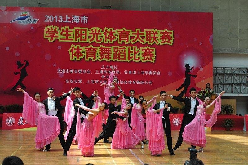 5月25日,2013年上海市学生阳光体育大联赛体育舞蹈比赛在东华大学延安路校区开赛,来自东华大学、复旦大学、上海交通大学等14所高校的体育舞蹈爱好者与上海各区县的中小学代表队约400名运动员参加了各项目的激烈角逐,赛场上轮番上演着热力四射的“时尚旋风”。上海市体育局巡视员、中国体育舞蹈联合会副主席陈一平,松江大学园区管委会主任吴楚武,东华大学副校长邱高,市教卫党委宣传处副处长冯艾,市学生活动管理中心体育部部长蒋胜等出席开幕式。邱高代表学校在开幕式上致辞。开幕式由上海市大学生体育协会体育舞蹈分会秘书长、东华大学体育部副教授楼晓娟主持。