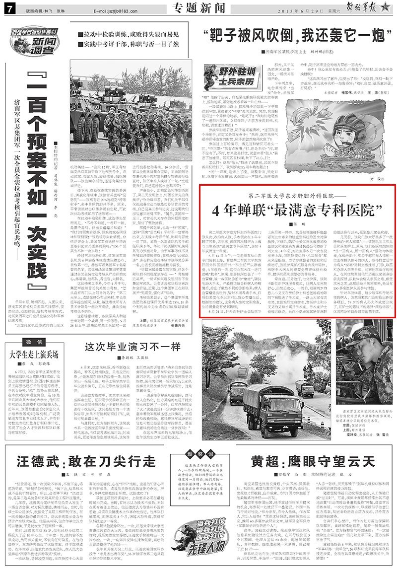《解放军报》:第二军医大学东方肝胆外科医院——4年蝉联“最满意专科医院”