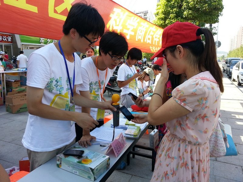 13日,东华大学科学商店在合肥蜀山经济开发区建立了首家上海市外综合性门店,并由实践团成员开展了门店揭牌后的首次便民服务日活动。此家门店的成立,是为了能够更好的发挥科学商店作为大学生科普志愿者组织的重要作用,为上海市外的社区居民提供科普宣传服务,由东华大学科学商店与合肥蜀山经济开发区建立起长期合作协议。该门店结合了东华大学科学商店12个服务部的服务项目,充分调研和考虑所服务对象的特点和需求,在街道、社区设点,每学期定期开展“菜单式”的科普服务活动。上海市外综合性门店的建立是东华大学科学商店推广之路上的重要成果,是科学商店在科普领域影响力再上新台阶的重要标志。在本次便民服务日活动中,实践团推出了农药残留检测、空气甲醛检测、电磁辐射检测、DIY明信片以及益智游戏等多个参与性和互动性很强的服务项目,并发放了由东华大学科普志愿者编写的科普读物《生活百科》,吸引了众多居民前来,受到社区居民的好评和赞许。