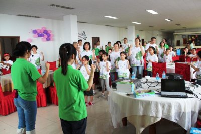 本次活动的创新之一,便是全程加入A4210理念,志愿者们身体力行,号召全体参营小朋友及家长在衣、食、用、行四个生活方面,养成勤俭低碳的好习惯。志愿者们利用用餐时间,特别号召营员加入光盘,节约每一粒粮食。