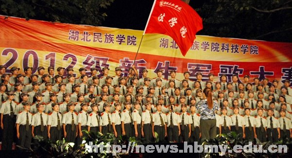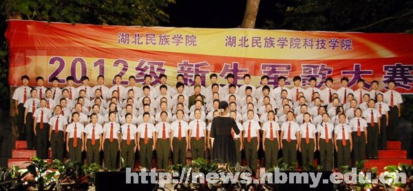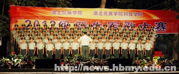 全校各二级学院均派队参加了比赛。根据比赛规则要求,每队演唱两首歌曲,一首为湖北民族学院校歌《壮志凌云》,一首为军歌。经过激烈角逐,经济与管理学院代表队、艺术学院代表队并列获得比赛第一名。