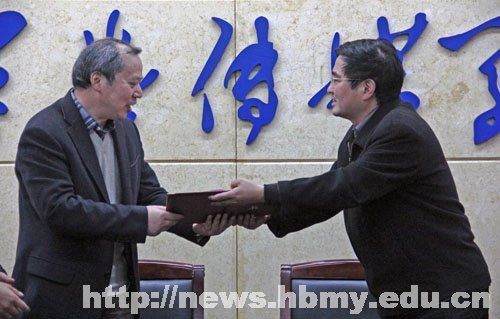 本网讯(通讯员 张宏树 姚爱华)11月21日下午,华中师范大学新闻传播学系教授、博士生导师、湖北省编辑学会副会长范军被聘为湖北民族学院编辑出版学专业的客座教授,副校长邓磊在文学与传媒学院为他颁发了聘书。