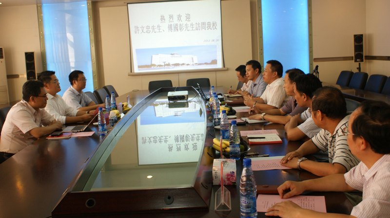 8月30日上午,在湖北省台联办负责人的陪同下,台湾暨南大学许文忠教授和台湾前程文化事业有限公司总裁傅国彰先生一行来湖北工业大学访问交流,副校长张颖江出席接待,国际交流与合作处、经济与政法学院、管理学院相关负责人以及部分相关领域教授参加接待和会谈。
