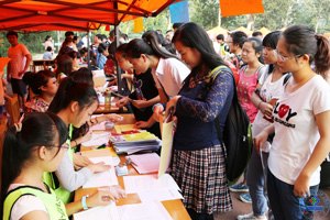 9月7日,是2013级8800余名新同学集中报到的日子。平日寂静的校园热闹起来了,彩球迎着微风招展,迎新专车熙来攘往,热情洋溢的志愿者贴心导航,到处是充满新奇与期待的新面孔。学校领导范跃进、程新、车滨、张硕秋等分别来到迎新现场指导工作,看望慰问一线工作人员,欢迎新生与家长的到来。学校办公室、宣传部、学工处、安全管理处、后勤与产业管理处等部门负责同志也在现场参与迎新工作。