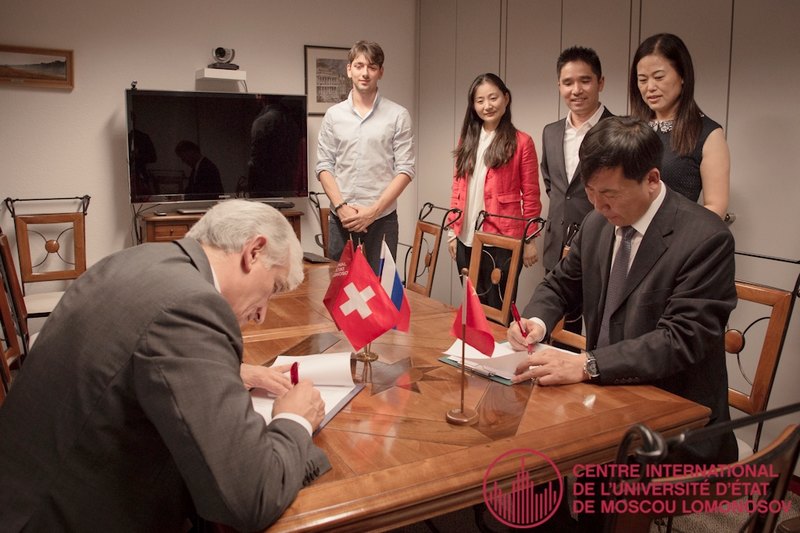 9月26日,院长陈建国一行赴莫斯科大学日内瓦分校就文科类项目的合作方面进行了会谈协商。双方探讨了拟开展的“汉语培训”项目的细节并达成共识。陈建国院长表示,希望在不久的将来,双方可以在“汉语培训”项目的基础上更进一步的开展2+2本科层次的合作,能够有更多的莫斯科大学日内瓦分校的学生到许昌学院去学习汉语、攻读文学学士学位。为进一步夯实合作基础,双方在协商一致的基础上签署了战略合作办学协议。(图片由院长办公室提供)