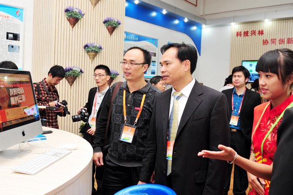 国家林业局发展规划与资金管理司副司长孙建来到到智慧林业展馆的三明学院展台,参观体验了三明学院信息工程学院建成的林产品电子商务交易网、三明市林业知识产权交易网、林业知识产权成果展示网等项目。