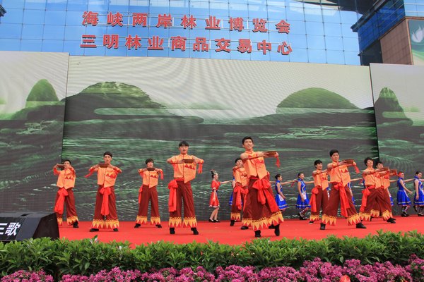 在本届林博会主题日活动中,与三歌文化传媒有限公司合作,三明学院教育与音乐学院学生参与演出了《请茶歌》、《朱子赞》、《活水长流天地间》、《竹竿舞》等四个节目。