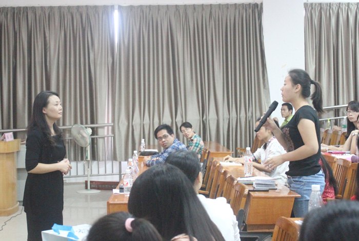 “今天的话题从梦想开始……”在同学们的热烈掌声中,广西壮族自治区特级教师、南宁市第29中徐元生校长在明秀校区作了一场生动的报告。徐校长引经据典,引用了《长门赋》、《唐摭言.怨怒》、《赠清凉寺和长老》来诠释“梦”的定义,并进一步解析了什么是“中国梦”、什么是“教育梦”、什么是“教师梦”。在如何成为一名优秀教师这个话题上,徐老师表示:课堂要有三声——掌声、笑声、辩论声;教师要有八问——问教学结果、问教学效率、问备课质量、问教学艺术、问领导才能、问三课表现、问基本建设。最后,她建议同学们要让心灵变得丰富而深刻;捕捉生命中的每一次感动;给自己积极的心理暗示;给学生更好的真诚的鼓励;富有意味的言说。