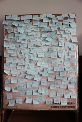 本次活动时长两天,包括三个部分:一、“寻找失散的高中小伙伴”——在便签上写下对高中母校的寄语,拍照后上传微博并@北京林业大学招生办官方微博来寻找校友;二、“免费明信片寄送”——在明信片上留下邮寄信息,填写回收完毕后由招生办公室统一向世界各地寄出;三、“写下你对母校未尽的言”——招办助理团对参与活动学生进行采访,录制北林学子想对母校说的话。