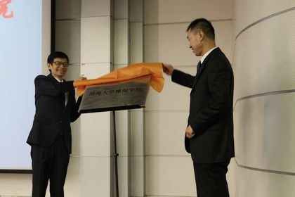 周景雷副校长与张黎明先生为渤海大学雅阁学院揭牌