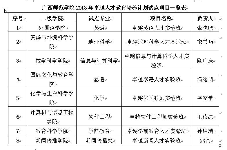 更多有关"培养,项目,试点,人才,计划"的文章请点击进入广西师范学院新闻中心查看