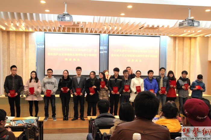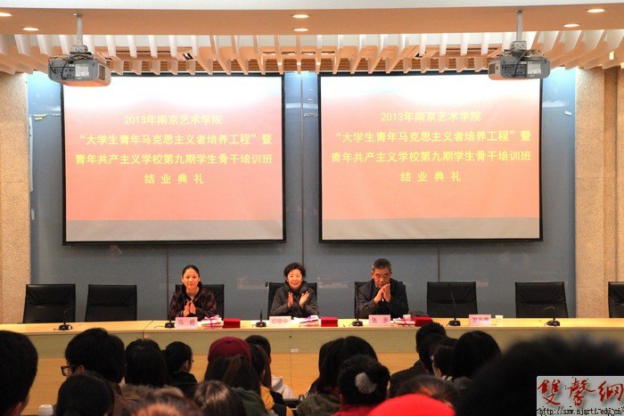 11月27日下午4点,南京艺术学院“大学生青年马克思主义者培养工程”暨青年共产主义学校第九期学生骨干培训班结业典礼在设计学院101报告厅举行。校党委副书记、副院长邱丽华、校关工委常务副主任张永出席会议,校团委工作人员、部分分团委书记、副书记,本期培训班全体学员参加了结业典礼。结业典礼由校团委书记马艳同志主持。