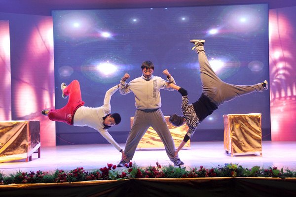 联欢会演出节目丰富多样、高潮迭起、精彩纷呈。教师节目《沁园春·雪》糅合了戏曲、朗诵等形式,老师们的表演声情并茂、大气磅礴,感染了现场的每一位观众。由预备役学生表演的军体拳《光荣使命》,是郑州职业技术学院预备役队伍的素质、实力和团队意识的集中体现,每一次擒拿格斗技术的展现,都引来观众们的阵阵喝彩。展现人间真情与社会温暖的舞蹈《天晴了》、风趣幽默的相声《合作风波》、具有民族特色的歌伴舞《天路》、充满欢乐与童趣的情景舞蹈《元旦游乐园》、展现大学生青春与活力的劲爆舞蹈《炫舞青春》,情深感人的歌曲对唱《因为爱情》,赢得观众欢呼不断,把晚会气氛引向一次又一次高潮。