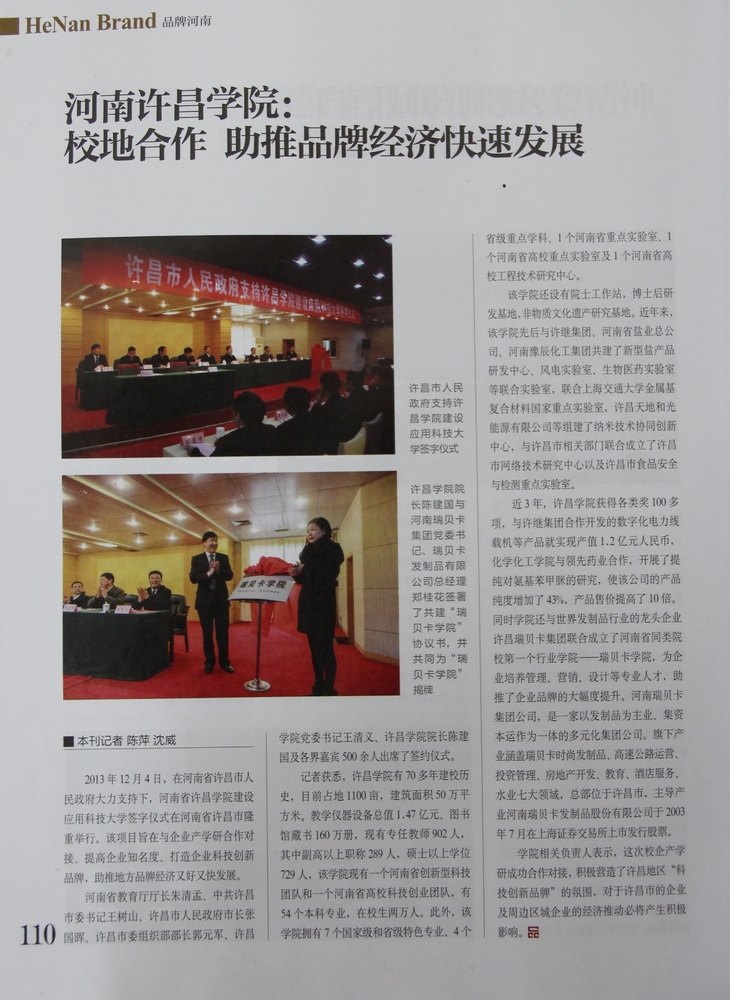 该杂志以《河南许昌学院:校地合作 助推品牌经济快速发展》为题报道许昌学院