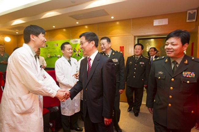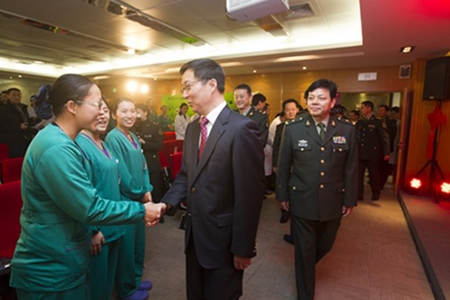 1月26日上午,中央政治局委员、上海市委书记韩正,市委常委、宣传部部长徐麟,市人大常委会副主任钟燕群,上海市副市长时光辉,全国政协常委、上海市政协副主席周汉民等领导在学校孙颖浩校长,陈锦华政委,政治部王连锁主任,医院张从昕院长,夏阳政委等校院领导的陪同下,来到长海医院亲切看望慰问一线医护人员,并向大家拜年。