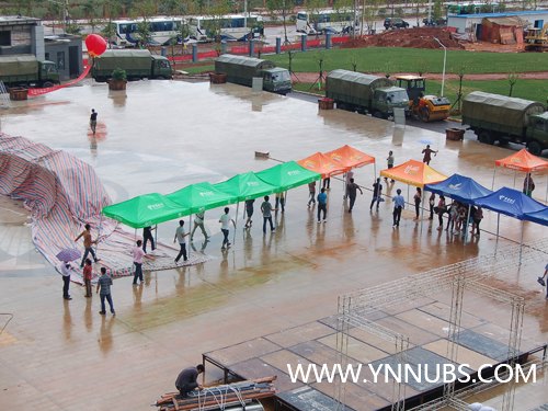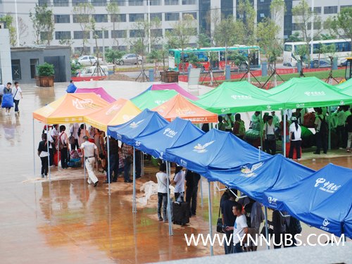 9月8日上午是2011级新生的军训汇报演出,汇演结束后2011级工商管理学院学生将入住杨林校区。为保证本次返校不出现意外,校领导及学院教师事前都作了充分的准备,以保证返校顺利进行。上午10点,工商管理学院全体辅导员及志愿者乘车前往杨林校区,做新生返校的准备工作。由于2011级新生人数多学院多,工商管理学院和会计学院被安排为第一批返杨林的队伍。2012时左右杨林校区下起大雨,为保证学生的行李不受损,校领导立刻安排后勤人员拿来了超大的帆布袋,并将零散的帐篷连接起来,形成一条无雨的安全通道。15时左右,雨点渐渐小了,但地面上还是有些许多水渍,工商管理学院2011级的车辆学生陆续到达杨林校区,在高年级志愿者的带领下,经过清点,组织进行行李认领和宿舍分配。乌云散去,火热的太阳,晒得同学们眼睛发花,由于学生的行李袋经过多次搬迁,有些同学的编织袋已经破损,有些同学行李的标签已经遗失,这些给行李分配搬迁再次带来麻烦,工管学院的志愿者本着不怕苦不怕累不怕晒不怕喝的精神,一一为新生们排忧解难。16点30分再次下起小雨,但工管学院2011级学生全部顺利入住宿舍。