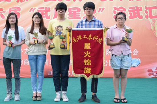 汇报演出中,同学们身姿矫健,一招一式行云流水,生动地诠释了太极拳的自然优雅、咏春拳的刚柔相间、南拳的威猛迅疾,精彩绝伦的武术表演给现场观众带来一场视觉盛宴。在集体套路项目中,化工学院2013级环境专业的华晟杰、高雨等9位同学一举夺冠。机械工程学院2012级机械专业(1)班的李雪滢同学动作精准有力,一人包揽了刀、长拳、棍术、传统套路全能四项冠军。最终,经过激烈角逐,商学院囊括男团、女团以及总团体积分第一名,商学院和机械工程学院捧回本届“星火精神”杯。
