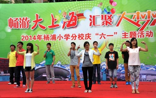 活动过程中,学生党员与孩子们组队,通过翻阅图册的方式“游历”大上海,学生党员还身兼“导游”一职,向家长和孩子们介绍上海的知名旅游景点。期间,大小学生纷纷上台表演,孩子们欢快的舞蹈和灿烂的笑容让人感受到了花朵们的健康茁壮成长,大学生则用娴熟的手语和《我们都一样》的青春歌声为孩子送上诚挚的祝福,活动现场氛围热烈欢快。